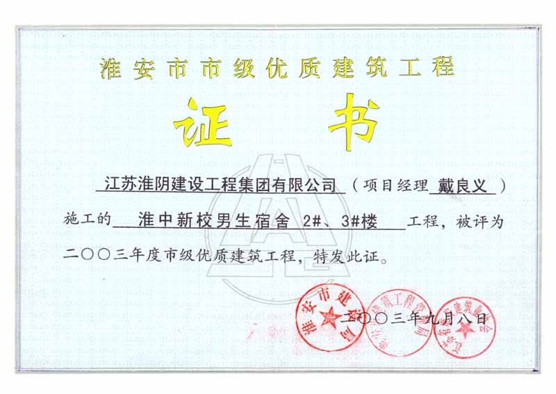 2003年市级优质工程淮中新校女生1#宿舍楼(耿玉海)