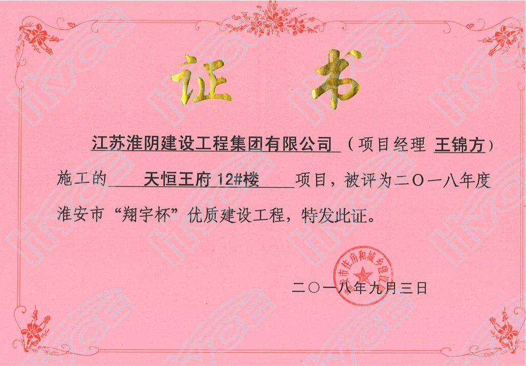 淮安市翔宇杯优质建设工程-天恒王府12#楼