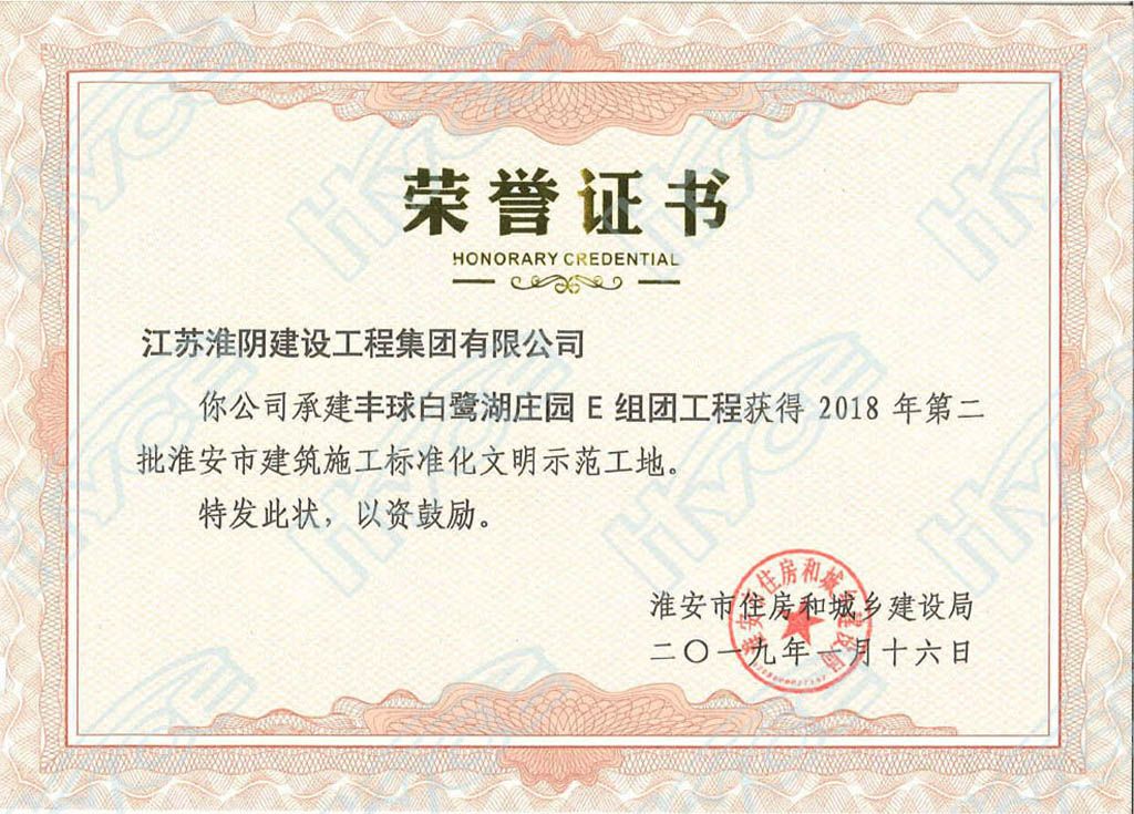淮安市建筑施工标准化文明示范工地-丰球白鹭湖庄园E组团工程