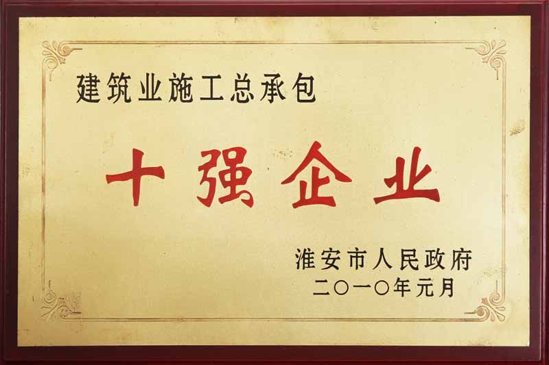 2009年建筑业施工承包十强企业