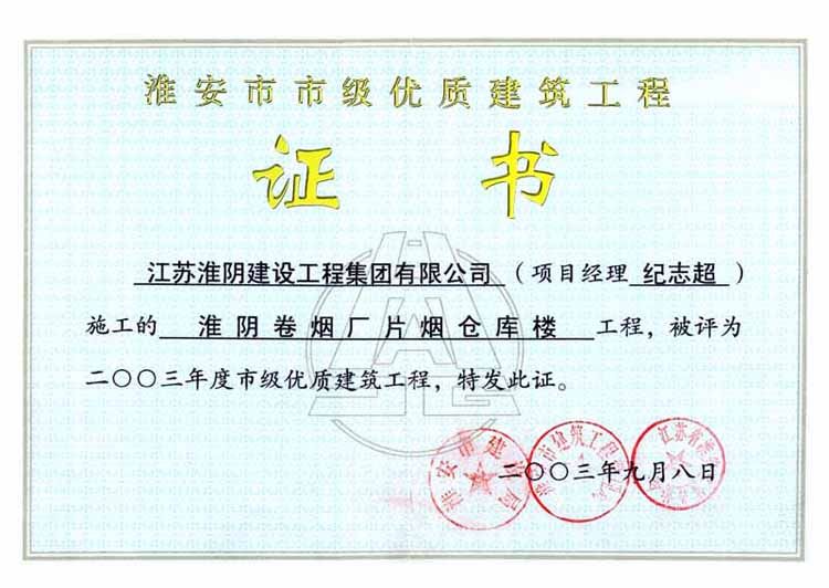 2003年市级优质工程淮阴卷烟厂片烟仓库楼(纪志超)