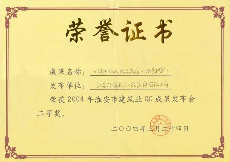 2004年市级QC解决GRC成品线条的质量控制(二等奖)