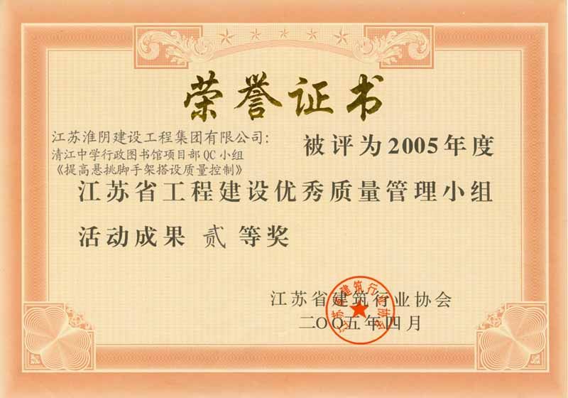 2005年省优提高悬挑脚手架搭设质量控制(二等奖)