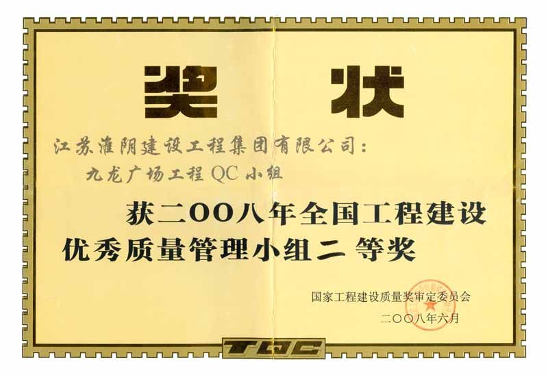 2008年全国工程建设优秀质量管理小组二等奖-九龙广场