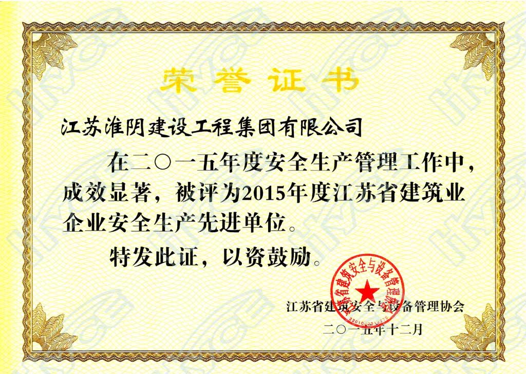 2015年度江苏省建筑业企业安全生产先进单位